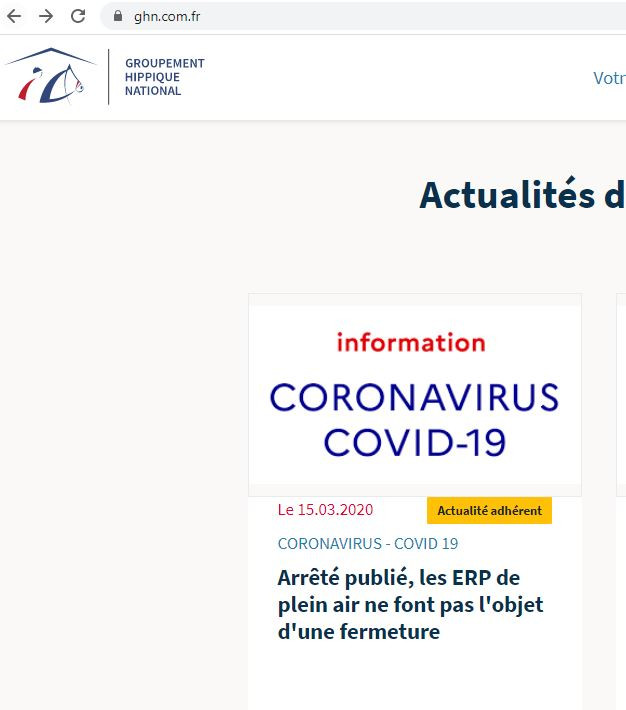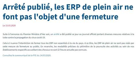 A la demande de certains membres, voici un petit rappel décidé par le Président : Il est interdit de se rendre dans les centres équestres et de monter à cheval (Sauf si dérogation spéciale) sous peine d'amende !