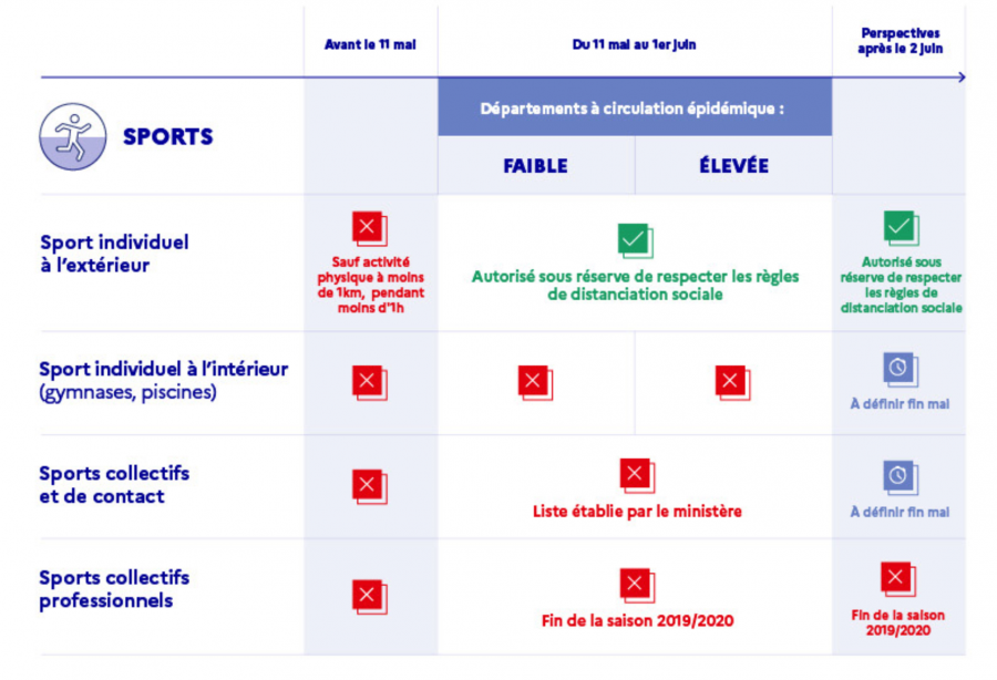 expar Il n'y a, pour l'instant, pas de distinction concernant le sport pour les départements rouges et verts.