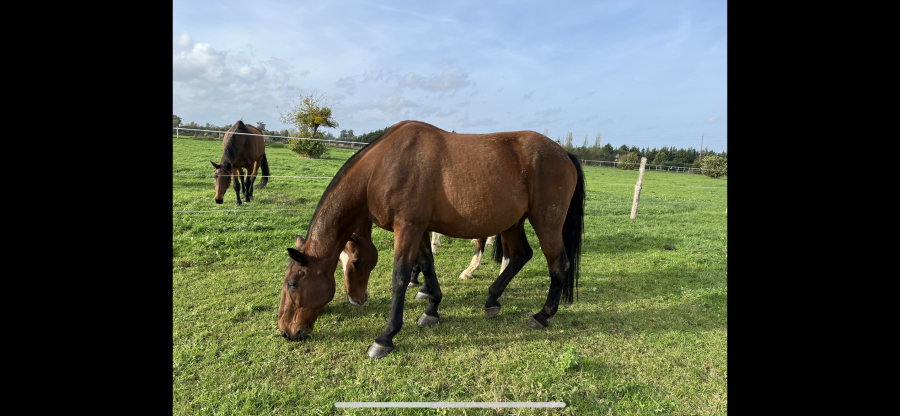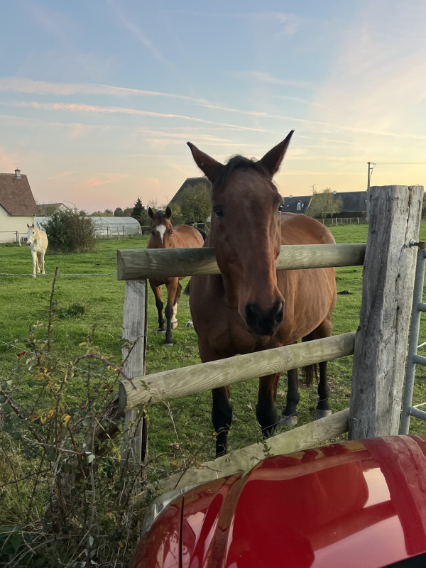 Là en fait il a une belle diarrhée bien verte depuis plusieurs jours comme il est que à l'herbe. Du coup il tousse aussi + que à l'enrubanné (car sur le plan respi j'en parle plus trop mais il récupère très bien depuis plusieurs mois, au pire il tousse deux fois quand on commence à trotter et il coule parfois un peu quand il mange mais très peu. Là il tousse une ou deux fois à chaque détente, ce qui était pas forcément le cas y'a quelques semaines mais le temps bizarre aide pas). Bref ça + il arrête pas d'uriner (encore aujourd'hui) donc on se demande si ça suffit pas. Samedi il voit la saddle fitter, d'ici là il va rester au repos. Je lui donne de l'argile depuis deux jours. Prochaine étape c'est le remontrer en ostéopathie et si vraiment ça dure je l'embarque encore en clinique. Il va très bien niveau énergie c'est vraiment ce pédalage des postérieurs que je sens mais qui n'a pas l'air de trop se voir, qui me perturbe.