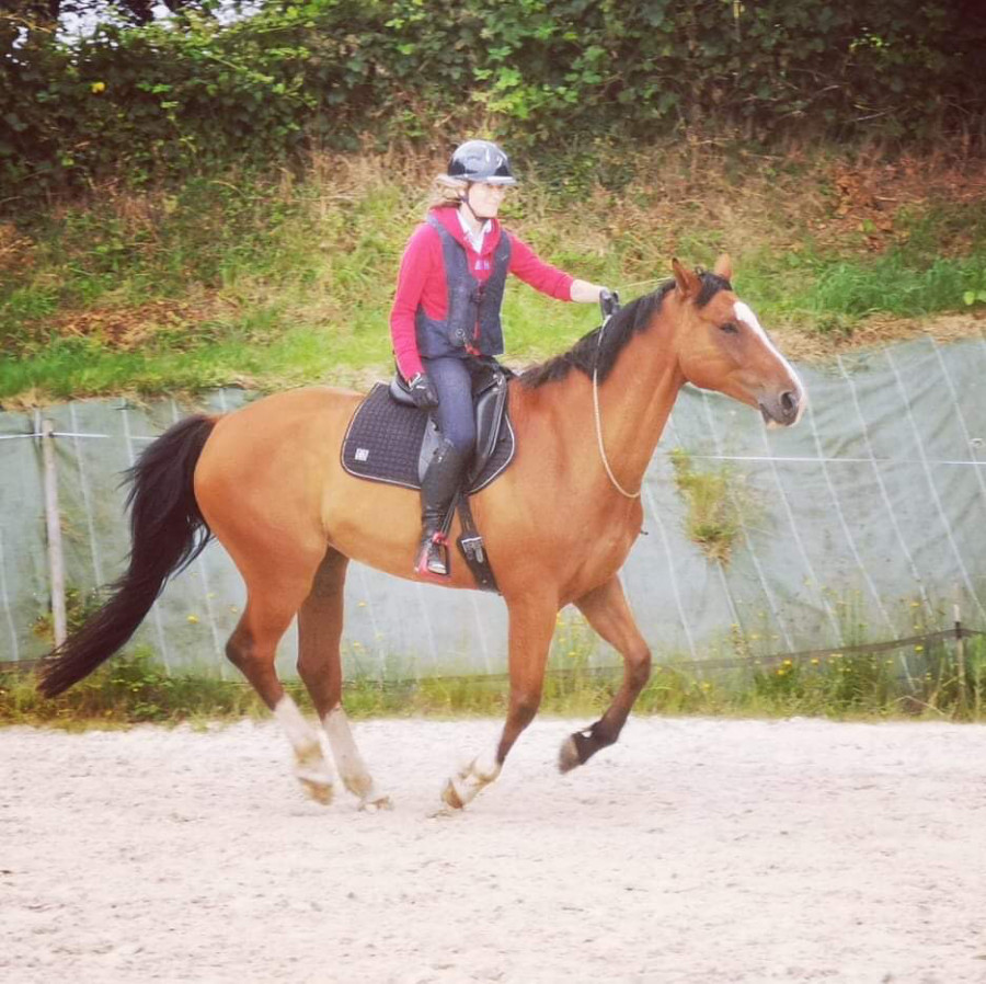 On travaille ensemble, progrès certes, mais en méthode très "dressage moderne". Epuisant à monter, moi je suis en surpoids donc je suis épuisée au bout de 10 mins. Il commence à tousser ici. Quand je le monte seule j'ai le droit à deux demi-tours qui me font tomber.