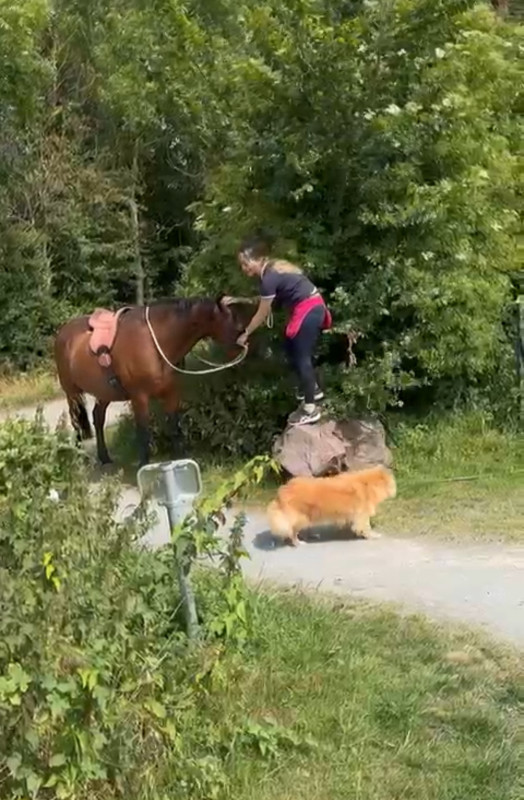 Hier galop plein cul en boing boing et juste gêné sur les gros gros cailloux en sortie de pré.