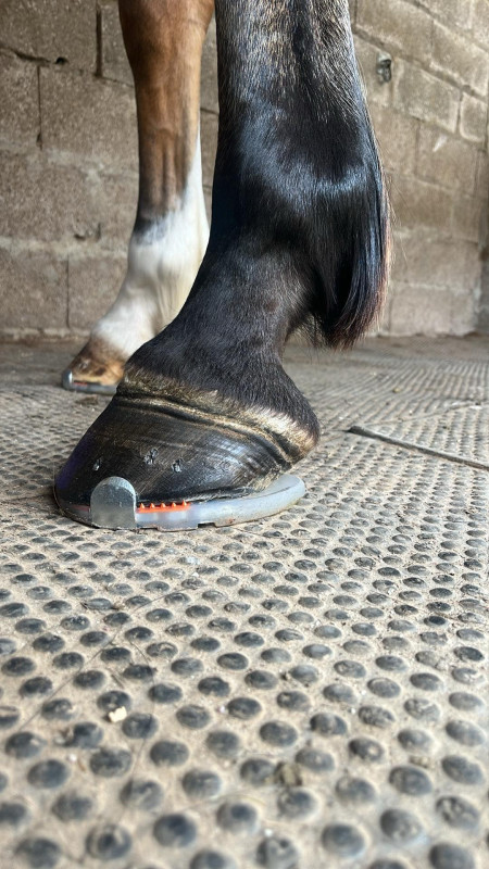Non c'est le maréchal. Le duplo permet un soutien de la partie caudale et surtout même s'il y a une armature métallique c'est un fer relativement souple. Le maréchal passe des écuries entières pieds nus donc il a voulu favoriser le fonctionnement des structures pour que le pied continue d'évoluer. Il m'a confirmé que sur les naviculaires les résultats étaient bien meilleurs pieds nus. (Et l'évolution sur le long terme pour tous les chevaux aussi de son expérience).