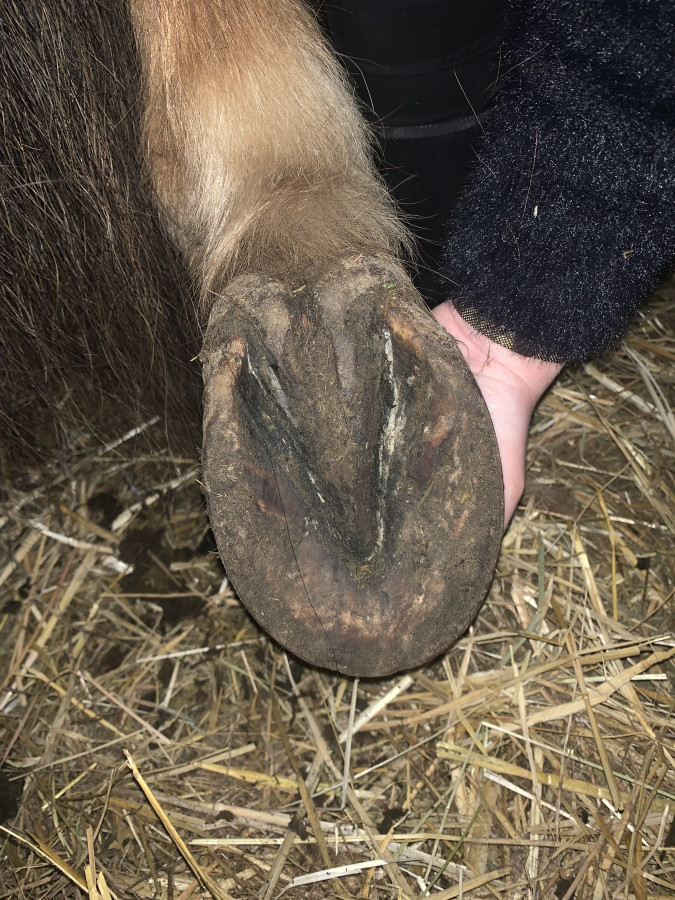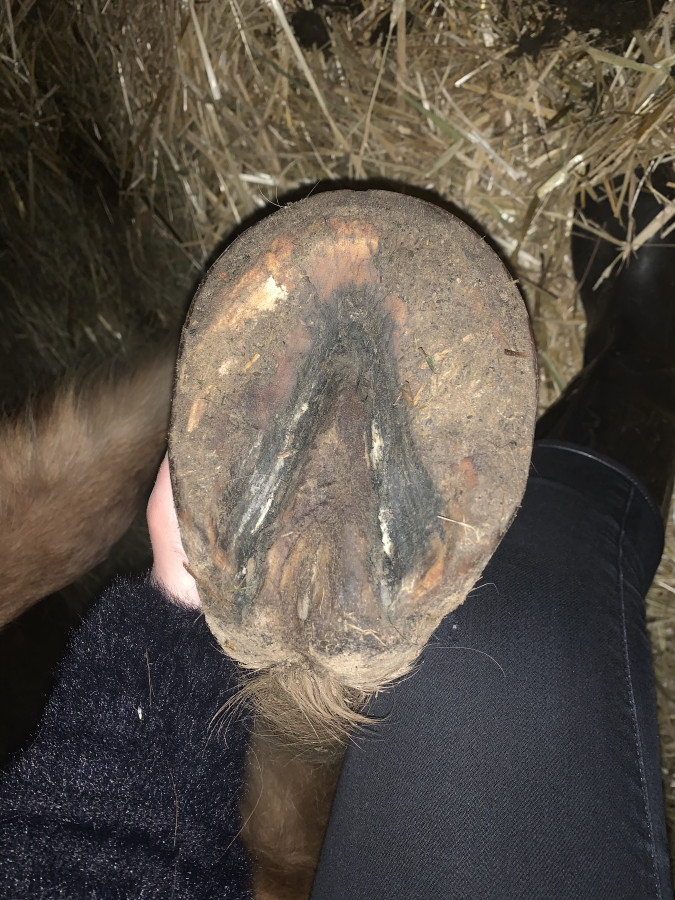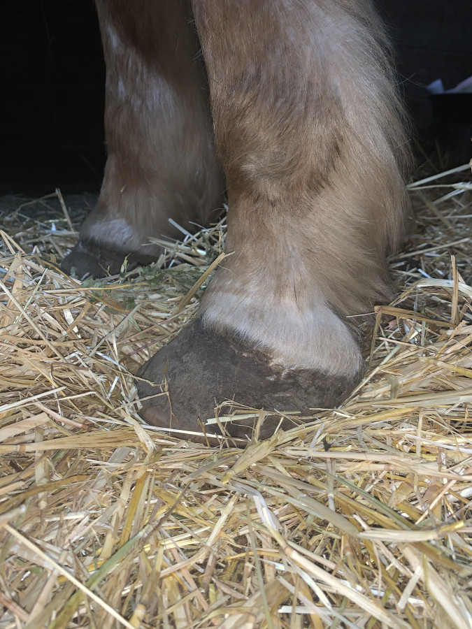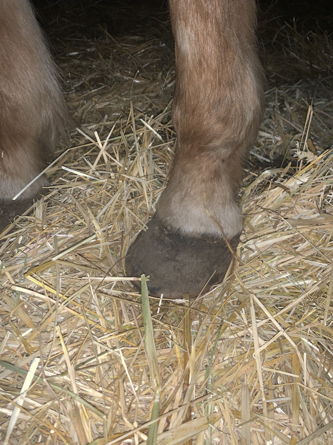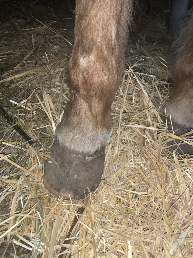 Le maréchal est passer y a 1 semaine environs et justement il était très content de l’évolution de son pieds, la corne est redevenu de bonne qualité et là sol est bien épaisse. Mais malheureusement hier début de crise...