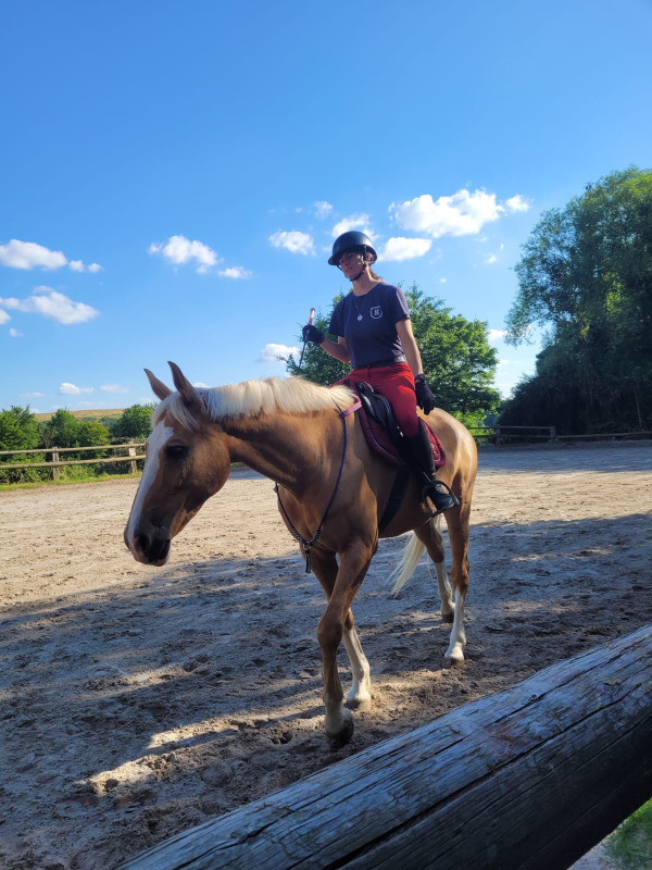 On a pu faire ce qu'on voulait, Easy ultra au contrôle, au tout petit galop au début puis je l'ai laissé avancer un peu plus, pas autant que j'aurai voulu mais avec la cheville encore bleue et gonflée, je voulais pas non plus prendre de risque, je ne pouvais pas trop m'appuyer dessus (d'où la position pas très académique