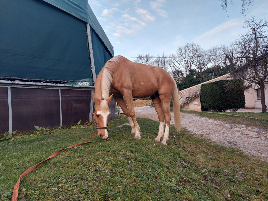 Puis on rajoute des foulées petit à petit, ça se passe pas mal du tout je suis contente, il a réussi à tenir un tour de manège (bon ok il a calé sur 1 foulée au trot puis est reparti direct de lui-même galop à faux