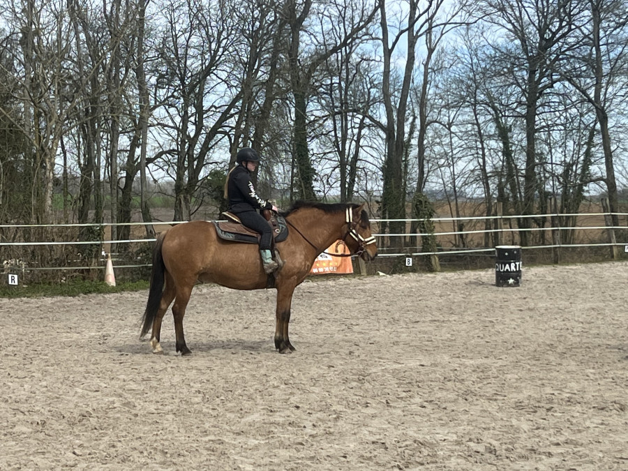 J'en est aucune idée de quand je vais pouvoir monter dessus mais il y reste 1 mois et demi et ils veulent que je partent à l'aise au trois allures avec lui . Par la suite j'irais faire des stages et ils viendront me faire cours à la maison .