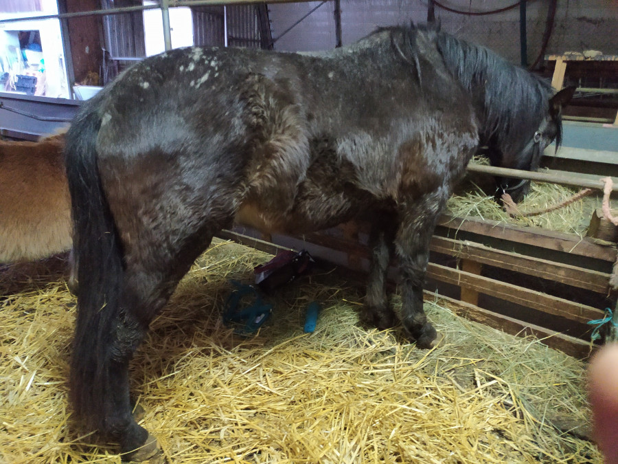 Programme du jours pansage complet et essai d'un nouveau licol. Un poulain top super calme malgré les chiens de l'eleveur qui cours de partout. Il est hyper curieux de tout, il a passé un grand moment à renifler toutes les brosses le sac de pansage et le licol. Seul point négatif il a dû mal à séparer de son pote Shetland mais ça va venir tentative de déplacement des hanches validé du premier coup. J'ai pas demandé plus pour première séance ça me suffit.