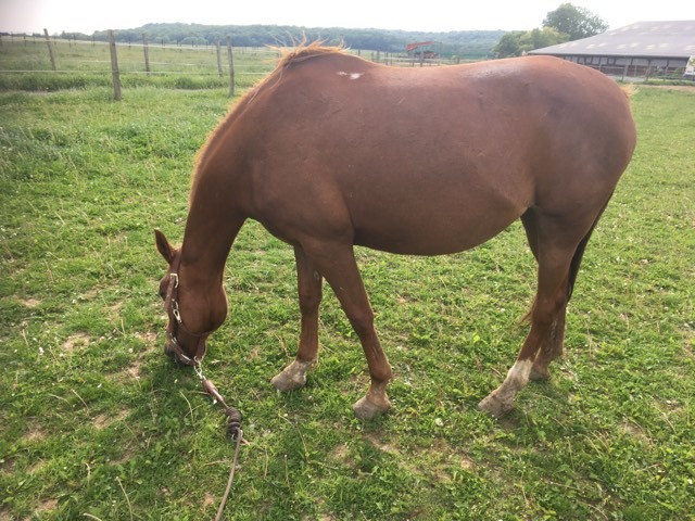 Par contre surprise : je trouve son dos moins creusé qu'avant ! (je venais d'acheter une nouvelle selle car l'ancienne n'allait pas, trop serré, son dos était entrain de s'enseller)