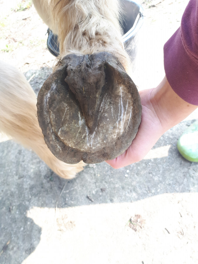 C'est une typée connemara de 25ans , elle a été très sujette à la fourbure, mais elle n'en a pas eu depuis 2 ans grâce à un bon suivi de son poids et de ses pâtures.