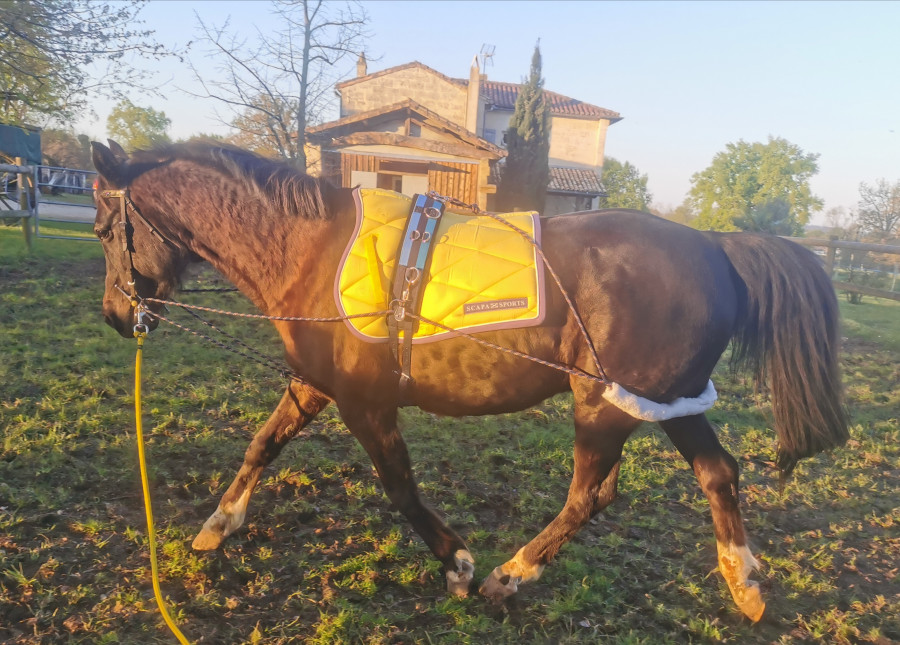 Et pour la coupe, ici un ANKY, donc coupe dressage, sous une selle mixte monoquartier orientée CSO.