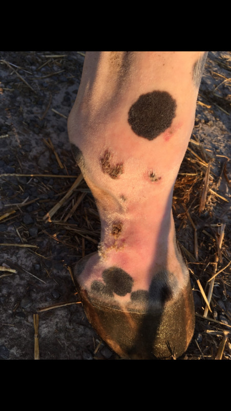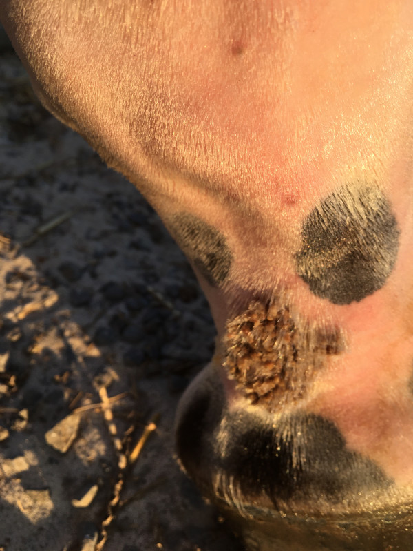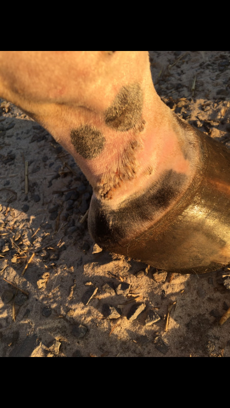 Mon cheval a déclenché une gale de boue il y a bien 3 semaines. Je ne l'ai pas vu immédiatement car il s'était fait des petites blessures similaires à l'atteinte + la pâture était très boueuse et j'y allais quand il faisait déjà nuit ..