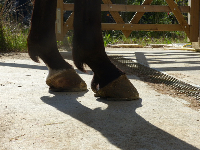 Pour vous situer le contexte, jument nickel à 4 ans dans ses aplombs, déferrée pendant plus d'1 an le temps de faire un poulain, et referrée en fin d'année au sevrage de sa pouliche.