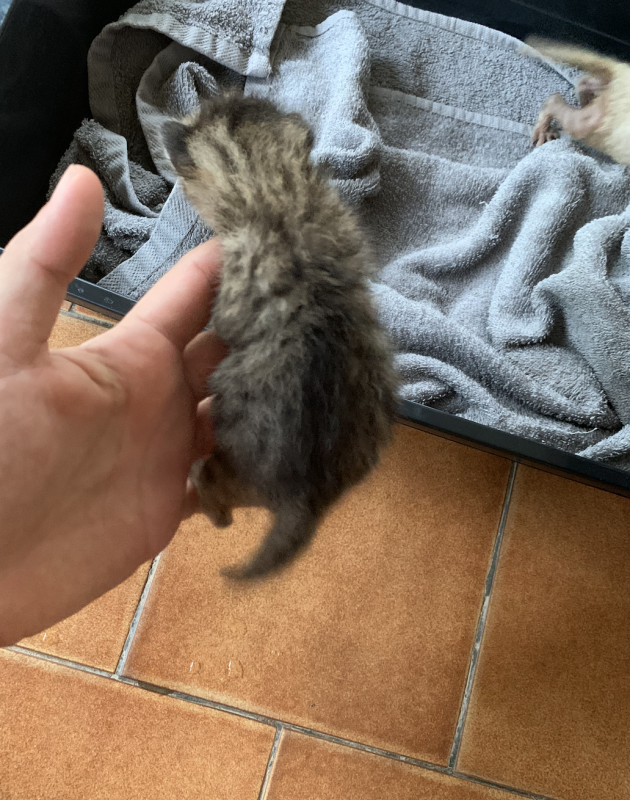 Si tu as la possibilité de les mettre sur un endroit tiède/chaud aussi. J'ai sauvé un chaton du meme age environ et à cet age là ils ne se chauffent pas encore correctement tout seul. Moi il dormait sur ma livebox qui avait une chaleur douce, c'était sur conseil de mon veto