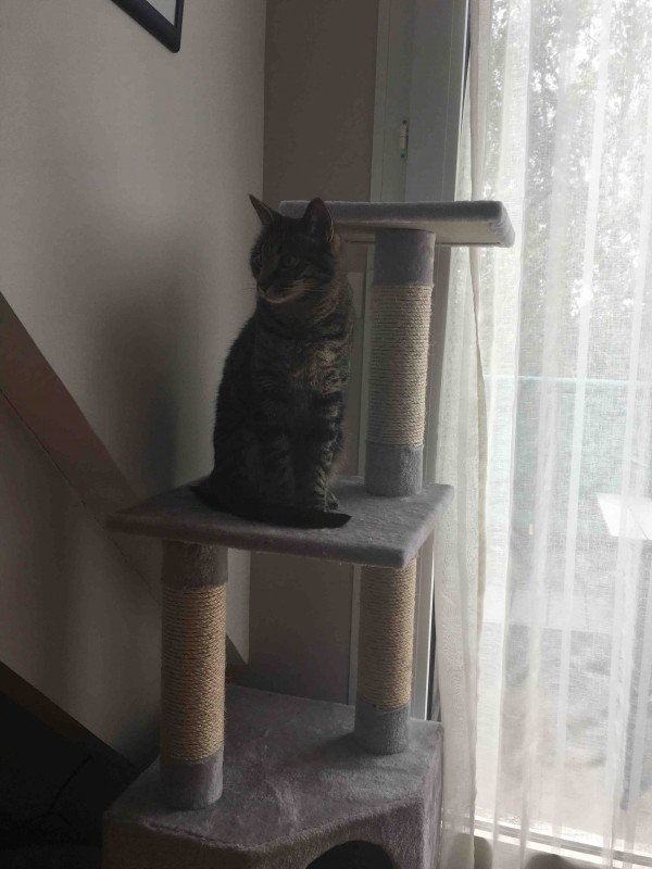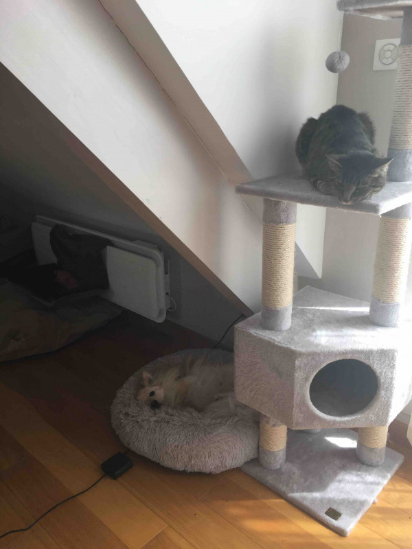 Des coins de dodo en hauteur il en a, et je vais essayer de voir si je trouve un arbre à chat d'occasion, parce que ça fait aussi un budget.
