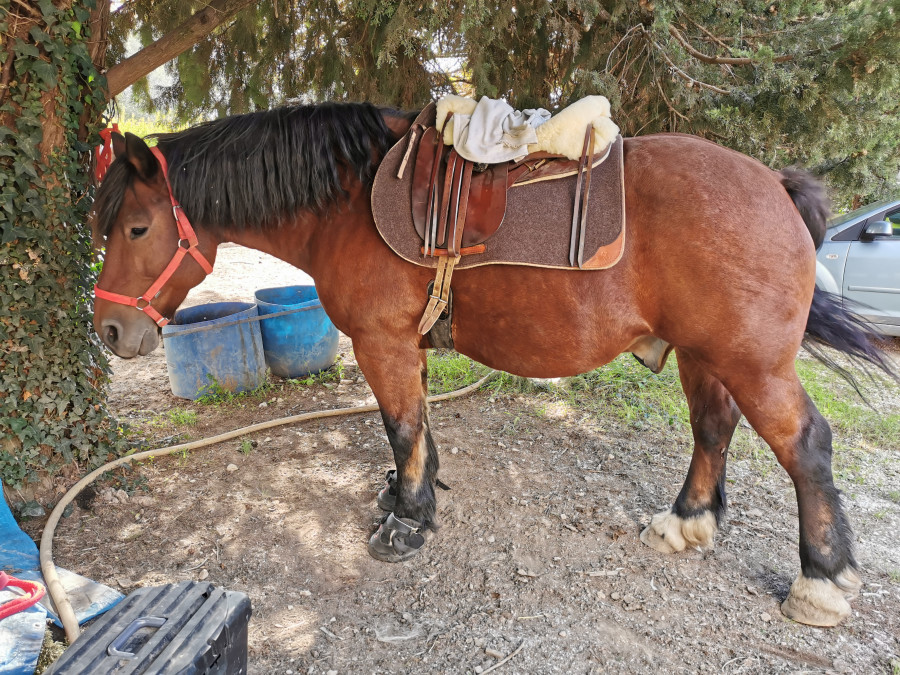 A main gauche RAS, à main droite il est raide boiteux au trot ! Je stoppe direct : mon cheval est dur au mal, s'il boite c'est que ça tire !