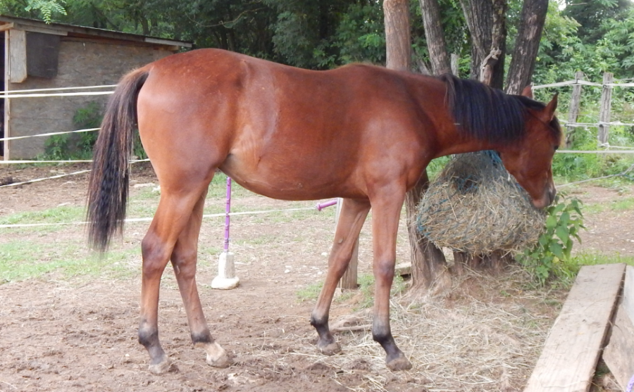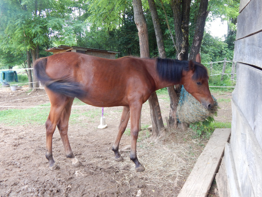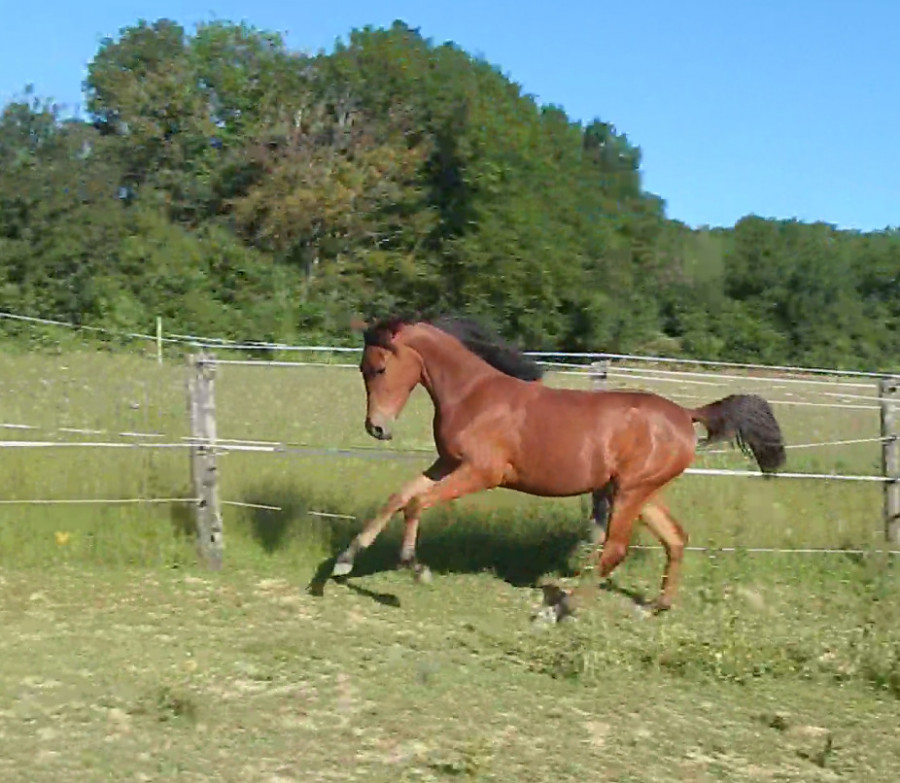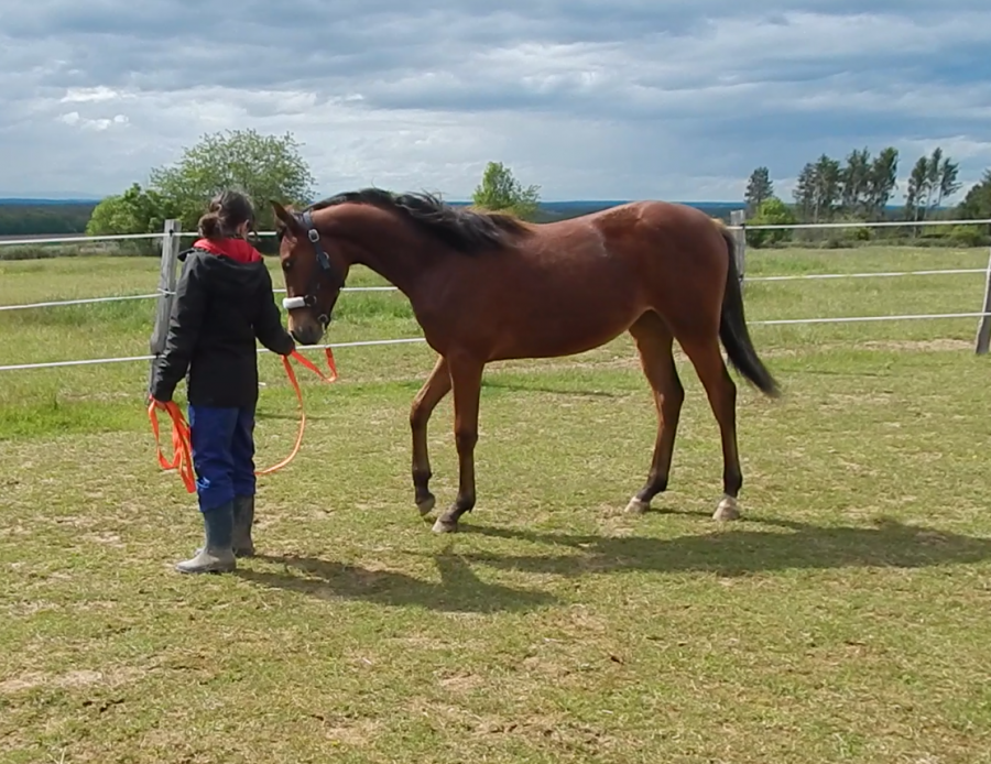 1ère vrai attache. Sinon j'ai déja fait semblant au pré, en la tenant à travers une attache au pré, pour apprendre à céder.