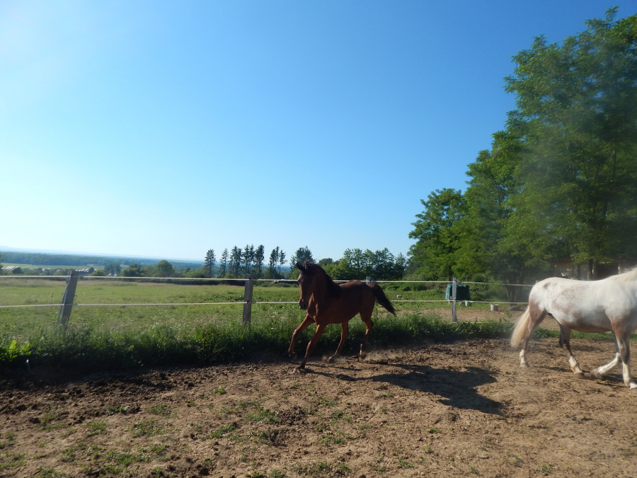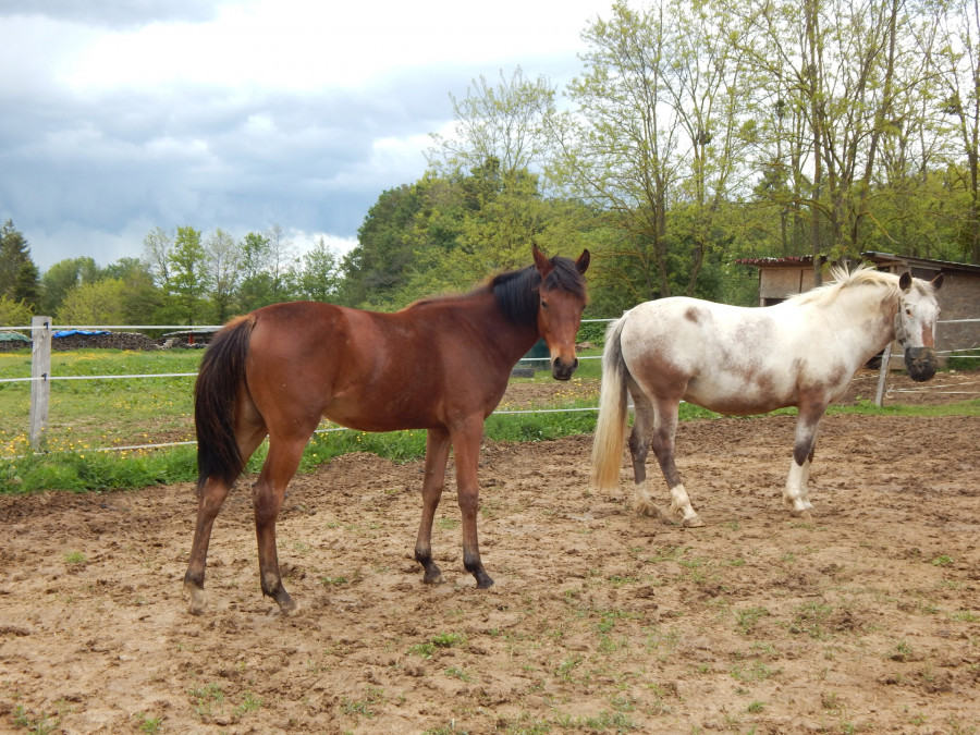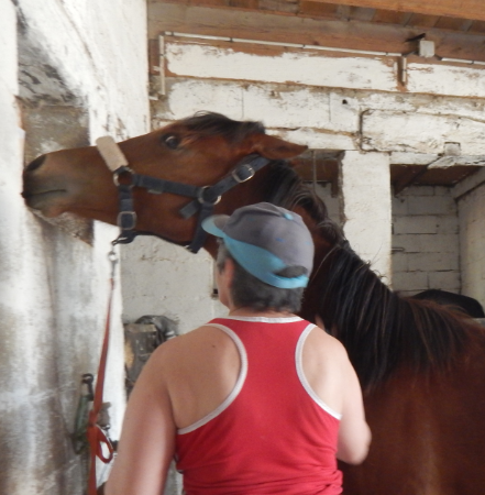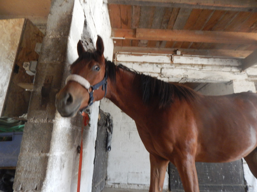 Pour aller dans l'écurie pas de soucis! Je licol Rubis en premier, Kéké qui pensais qu'elle allait rester toute seule quand elle a vu son licol, elle s'est jeté dedans!