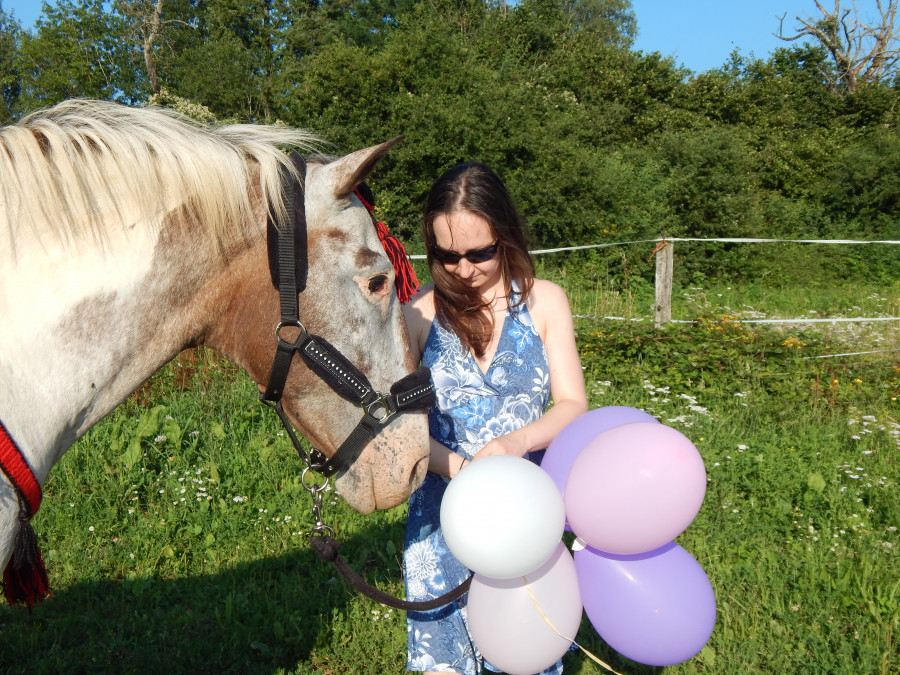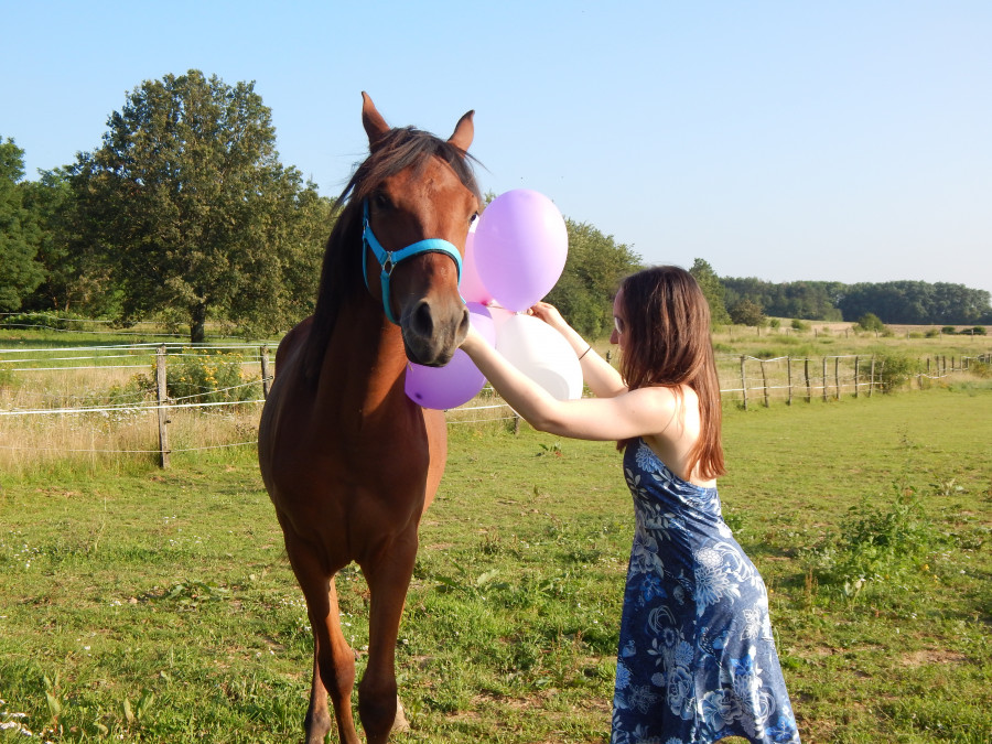 Hier on faisait un petit entrainement à pieds et me dis on va commencer le yoyo avec reculé-pas bougé-rappel. Je la fait reculer (à l'épaule pas encore à distance), lui dit attend et je recule doucement. Elle est restée sur place en mode ok faut attendre. Pour le rappel je me suis penchée en l'appelant et elle venu! Bon voilà 1er essai, réussite, fin. Mdr! Trop fière de ma pépette trop intelligente!