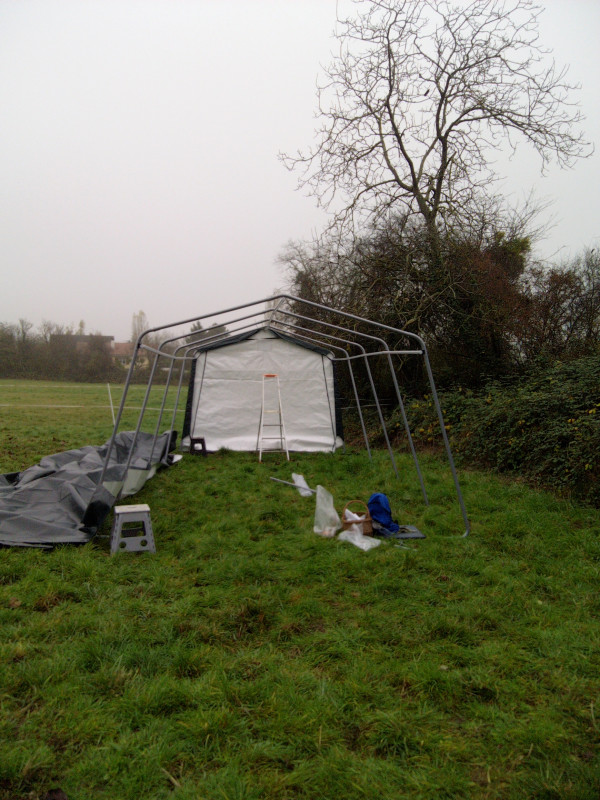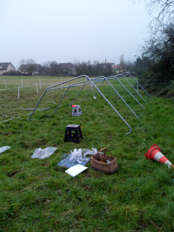 On reprend le montage de la tente en attendant le véto. Rdv à 14h30, il est arrivé à 17h voila voila ...