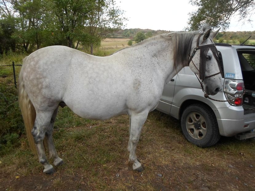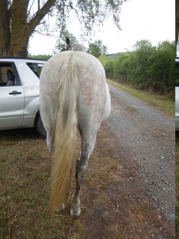 Ca s'est bien passé à part que Potrillo n'a pas voulu manger de branches quand on s'est arrêté. Comme il écoutait quand même Lotus hennir, on a fait quelques exos déplacements hanches/ épaules/ reculer, il s'est concentré, appliqué et relaxé.