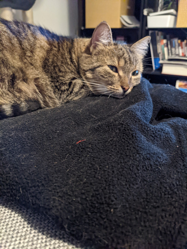Mettez donc vos meilleures photos de chat à l'état liquide ! Je commence avec ma Catwoman qui a fondu dans son arbre à chat.