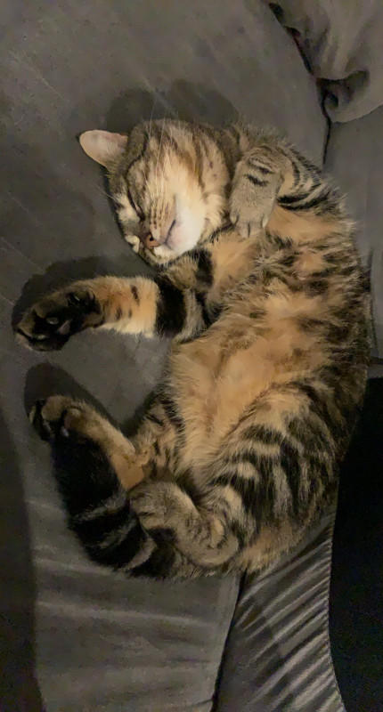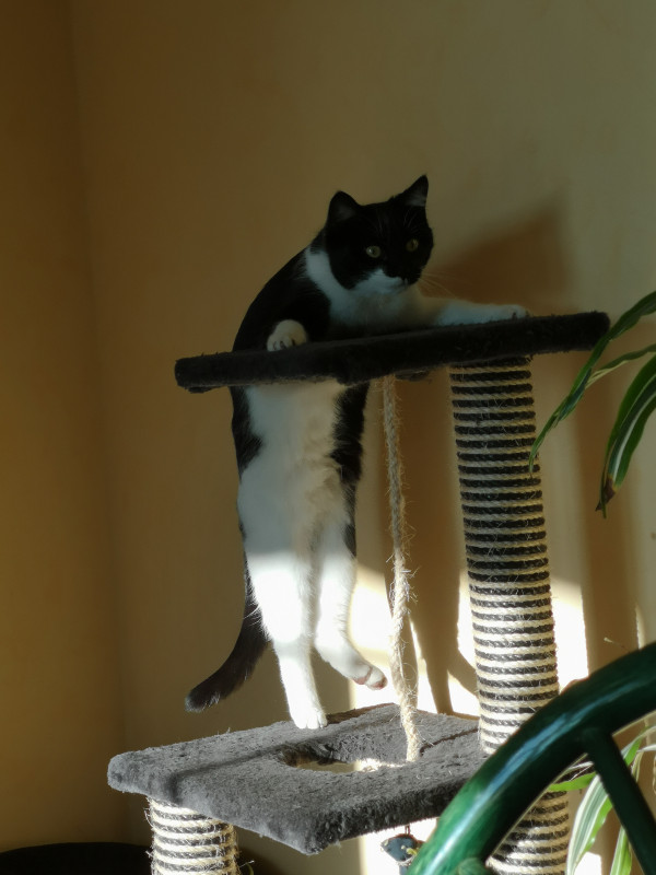 En vrai, elle me fait de la peine, elle doit sûrement avoir un truc qui déc*nne et elle n'est pas de première jeunesse en plus, mais elle sait encore sauter sur un canapé, une chaise ou un lit assez haut, donc elle semble heureusement le vivre assez bien quand même :)