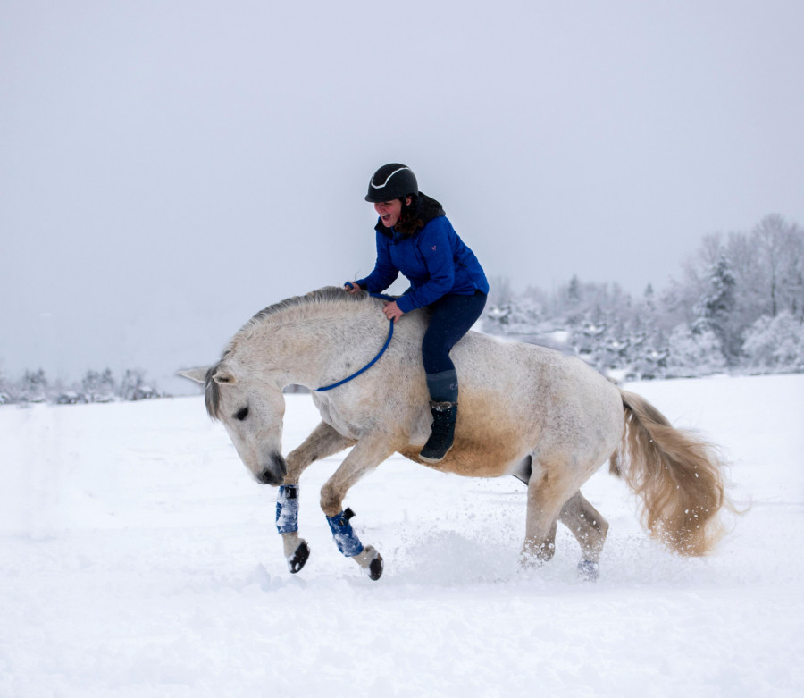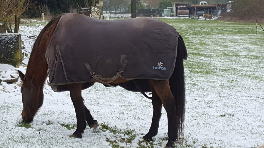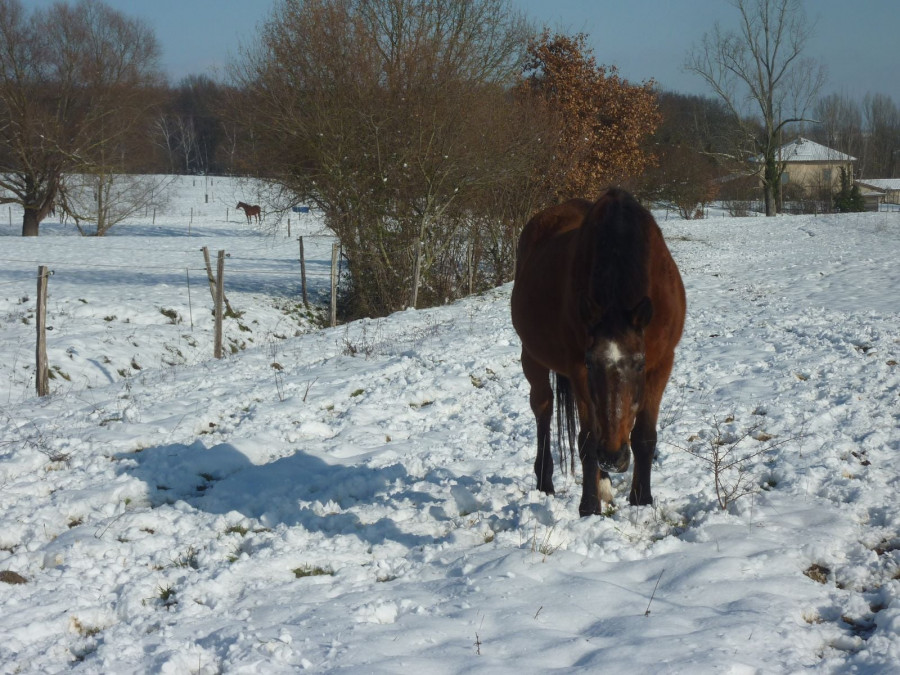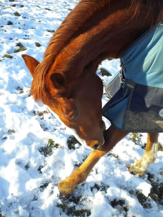 Ça me rappelle il y a 3 jours, j'ai vu un shetland au paddock qui a été surpris de se retrouver les 2 pieds avant dans l'abreuvoir avec la glace qui a cassé sous son poids