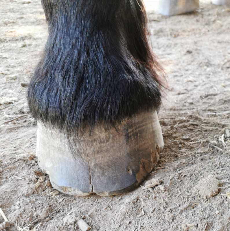 Mon cheval à les pieds cassants et j'ai eu beaucoup de soucis de déferrage et autre ! Il avait donc les pieds cassés, plus ou moins de corne partait avec le fer mais d'aspect le pied est loin de celui des pieds de ce cheval.