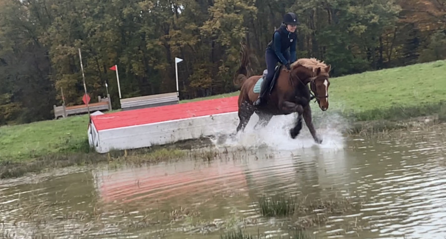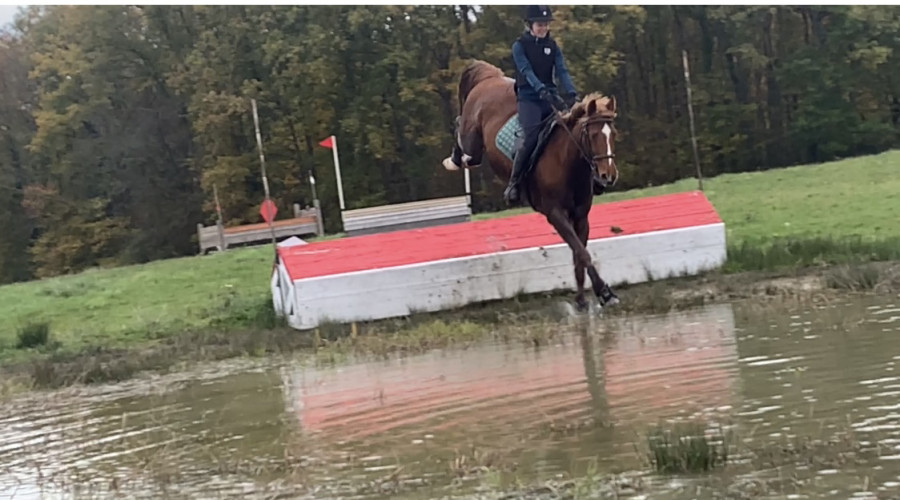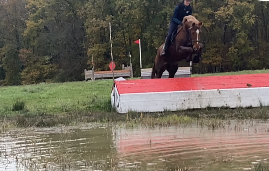 On a poursuivi avec qq enchaînements avec qq coffres et passage ds le gue. Et on finira par un coffre avec réception ds l'eau. Je pensais pas qu'on en serait à faire ça en deux séances lol. Ravie de mon petit cheval que N trouve vraiment extra