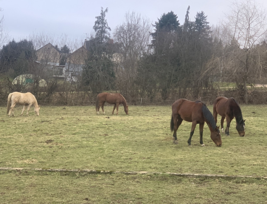 Cachectique mais de retour. . . Contente de revoir la troupe au complet dans mon pré !