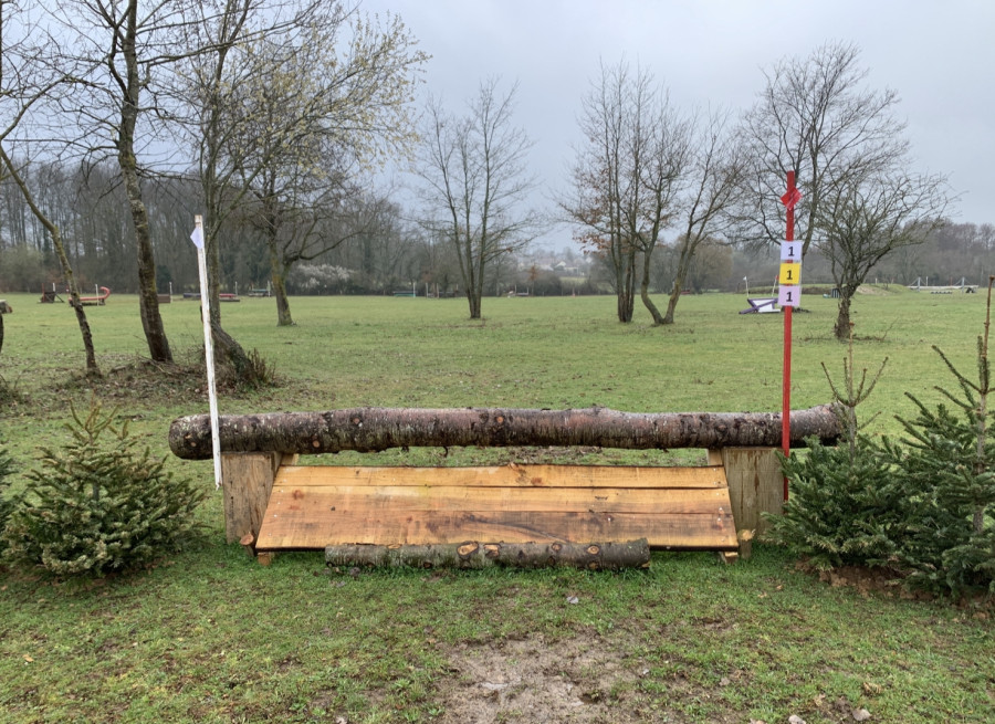 Le 1 est vraiment placé très proche de la boîte de départ. Puis direct grosse courbe à gauche pour aller sauter un autre tronc. On entre dans une forêt. Grosse descente puis remontée et un autre tronc. On galope jusqu'à un crayon. Puis un beau pont suspendu. Ensuite un bébé trou. Une combinaison avec entre les deux une belle butte. On continue pour aller sauter un très beau crocodile avec le gue derrière. Bien rempli lol. Sortie de gue un contre haut et un tronc à deux foulées. On continue sur une sorte de caisson coloré, un mur, un gue vide et un sucre d'orge en sortie puis une allumette. De quoi s'occuper qd même.