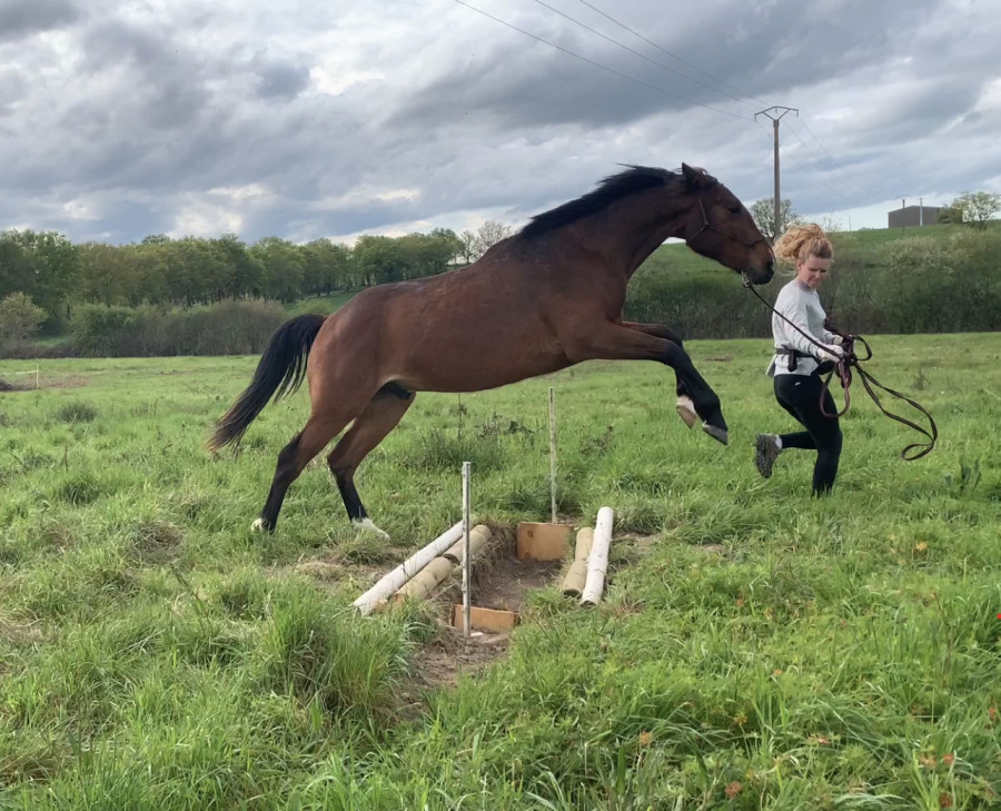 Du coup hier on a passé mon petit fossé en longe au pas et au trot puis monté au trot et au galop. Ça n'a pas franchement été un sujet. Tant mieux ! Mais est ce assez pour le mettre en confiance sur des trous " concours ". C'est toujours ça en tout cas. Je vais le passer qq jours d'affilé puis lui apporter qq modif pour " surprendre " un peu.