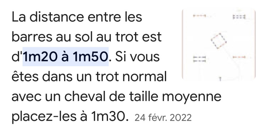 golga Ahahah non je pense que tu te gourres et qu'en fait tu mets plus d'un mètre. Une foulée de trot standard c'est 1m20/30. Regardes sur n'importe quel site. Après ça dépend si tu travailles sur du rassemblé.