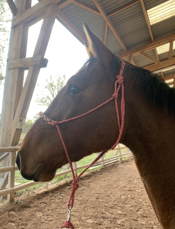 Il grandit paisiblement à la maison puis entame son apprentissage de cheval de sport. Malheureusement l’hiver 2017/2018, plusieurs myosites guident vers le diagnostic. Le test est fait. Verdict : positif PSSM1 ! Tout mon monde s’effondre…