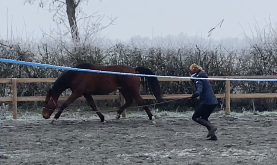 J'ai monté un rond de longe dans ma carriere pour entretenir le travail des départs au galop fait en cours. Je dois dire que je suis vraiment contente de mon baby.