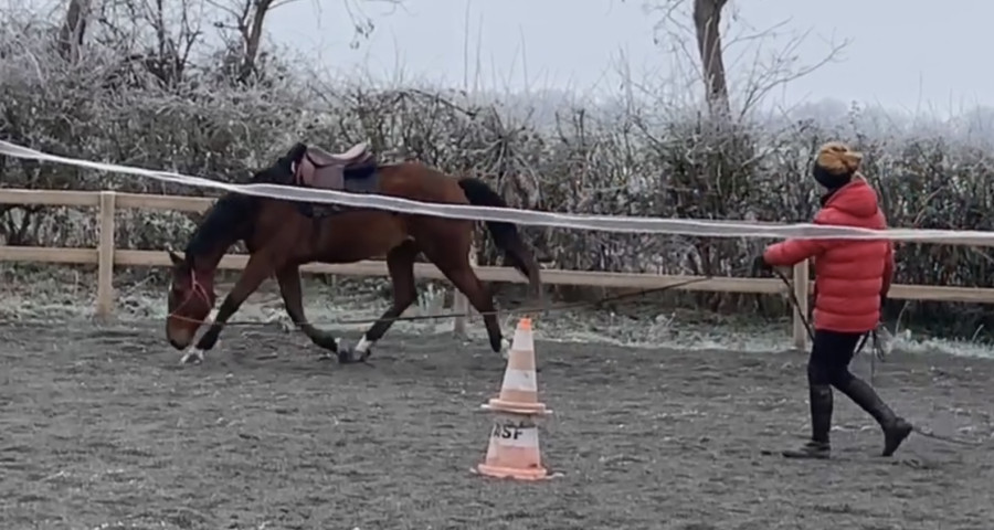 Avant cela c'était révision longe pour mon gamin. Rien de passionnant cette vidéo lol. Mais moi ça me permet de faire un petit journal de bord pour lui aussi. J'ai tenté un petit cavaletti avec abord au trot, incroyable la vidéo c'est le premier passage et la première fois qu'il le faisait. Top ! On révise aussi les départs au galop (c'est pas encore ça mais ça progresse) et le 8 (mention pour Aglaé !)