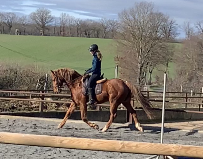 Et pour le faire flechir un peu plus sur son derrière, je pense que tu peux commencer à introduire des plus petits cercles au galop, voir des petits cercles en HED?