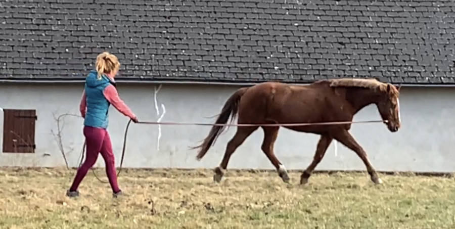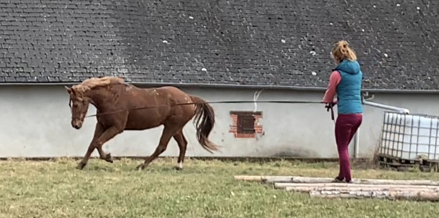 On tente le coup, et ce coup ci il suit le cheval au trot. Fin du premier essai. Bof.