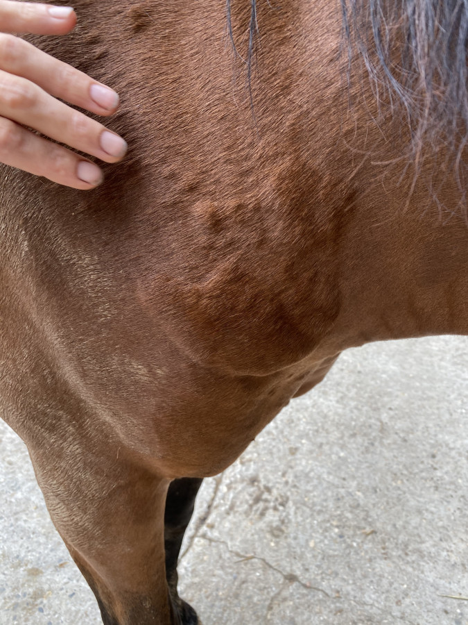 Il a aussi une boule sous le ventre qui vient d’apparaître, on me dit piqure, coup de pied ... j’ai mis de l’argile + douche.