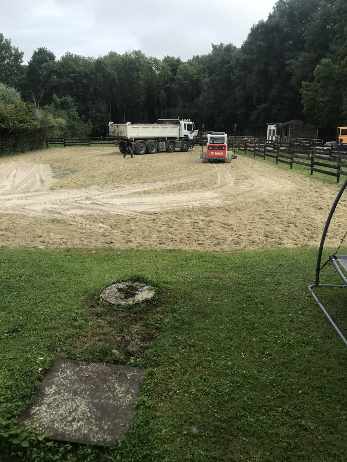 Du côté maison des chevaux j’ai déjà tout le nécessaire, paddock de 7000 m², boxe, abris pour le stockage des pailles/ foins, un coin douche et une petite carrière 20*40 m, le grand luxe !