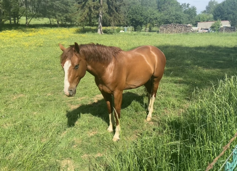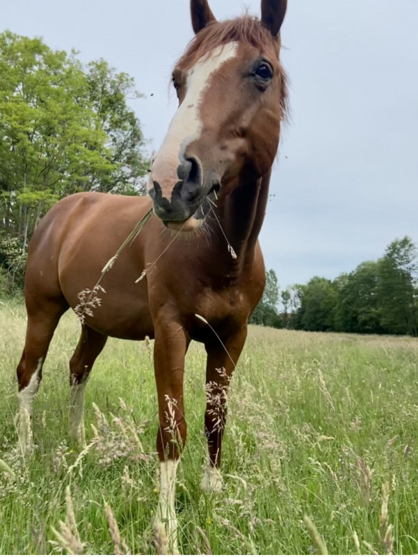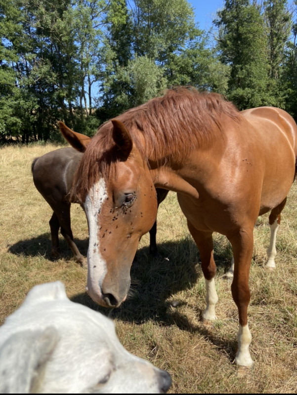 Je me laisse quelques semaines pour faire un point mais j'avoue que tenter la vie de petit cheval de concours au pré avec lui me plait bien notamment parce qu'il a une bonne tête, qu'il est plutôt classique au travail et qu'il est facile à maintenir en état..!