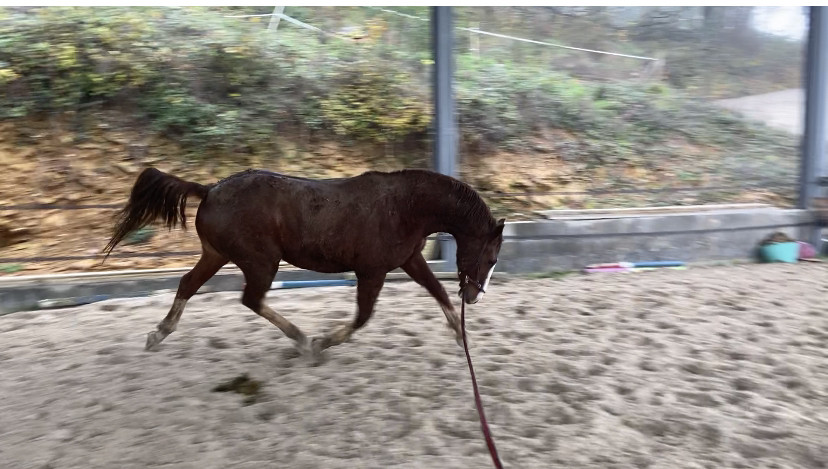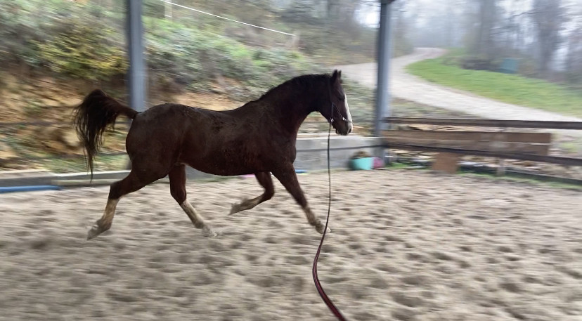 Je pense que la remise en route " facile " est maintenant dernière nous, j'ai pu faire mes premières analyses quant a ce qui est plus ou moins compliqué pour lui et je vais, en parallèle de l'apprentissage de nouveaux exercices, essayer de me concentrer sur quelques points spécifiques qui sont notamment : la réactivité a la jambe et l'énergie dans les transitions ascendantes. En effet, Ionesco a beau avoir un bon comportement a la jambe, je trouve qu'il ne jaillit pas assez dans son allure montante quand on lui demande de repartir et j'aimerais que ceci évolue. Ca me parait important pour sa future carrière au sport surtout si il n'a pas naturellement trop de sang.