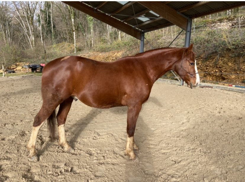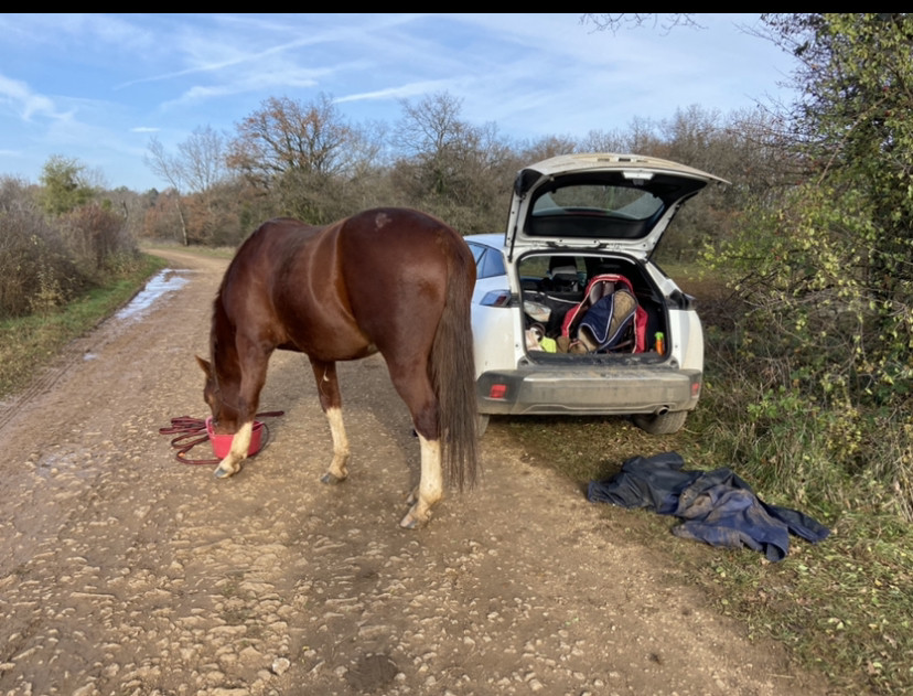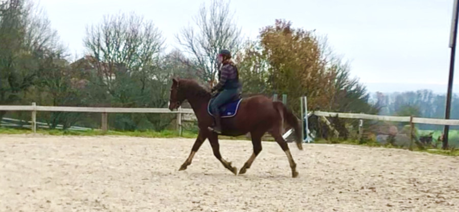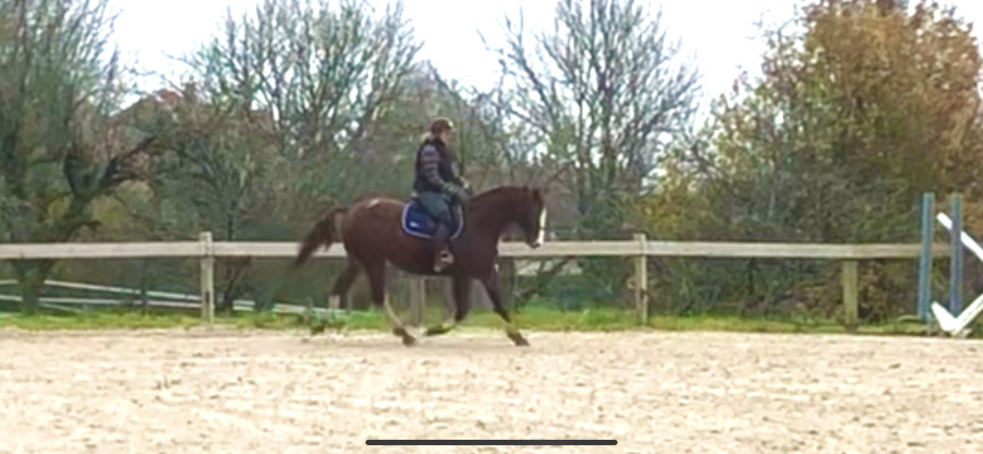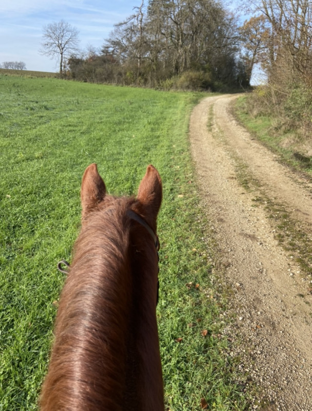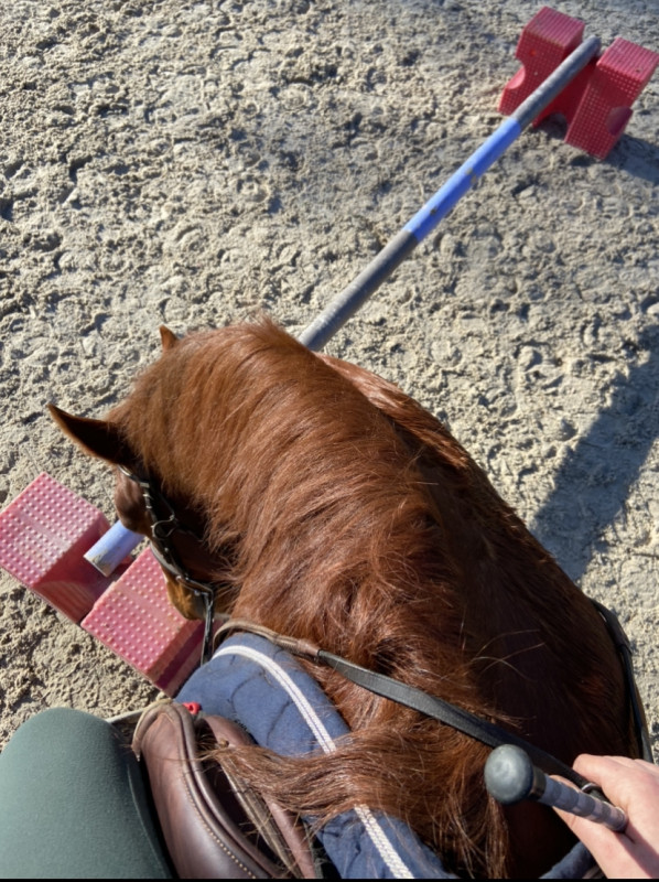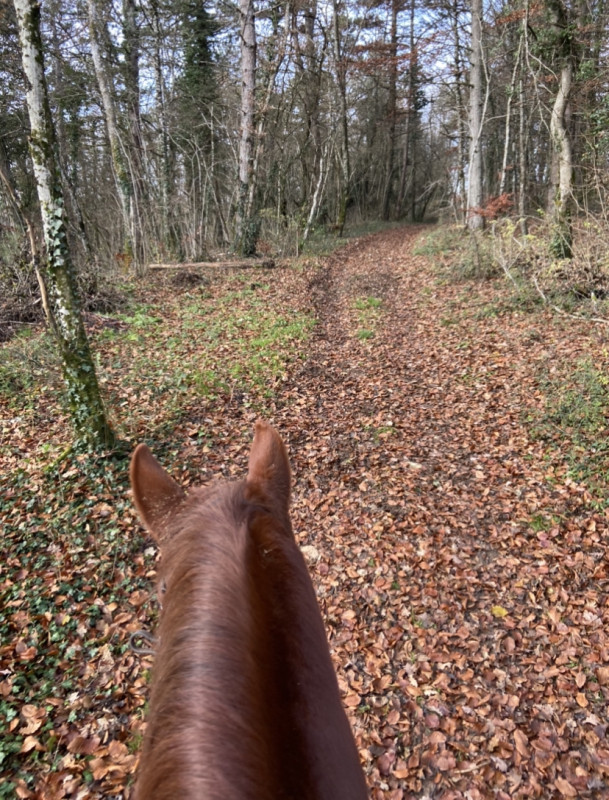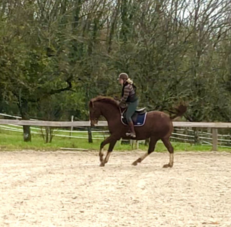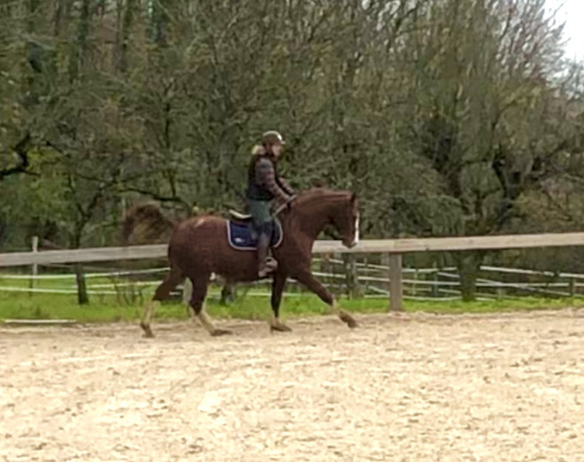 J'ai encore été très agréablement surprise par sa compréhension et sa progression sur l'exercice au long de la séance, j'ai fini par avoir un cheval tonique et en avant avec un équilibre dans le bon sens résultat des courses le travail au trot s'est reporté Naturellement sur le galop. La ou j'ai d'habitude un galop plutôt rasant, pas hyper dynamique et horizontale, j'avais un cheval tonique que je pouvais réceptionné dans mes mains avec un debut d'abaissement des hanches.
