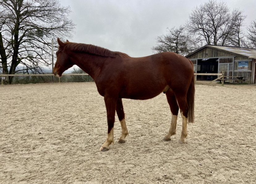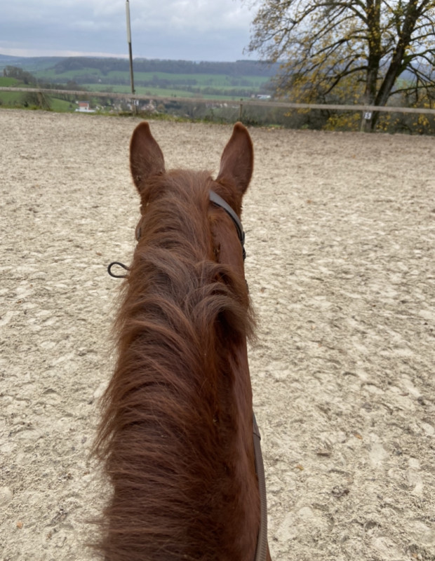Aujourd'hui on a fait une bonne seance sur le plat en ce sens donc. Beaucoup de transitions trot - arrêt - pas - trot.. avec pour objectif d'être tonic.