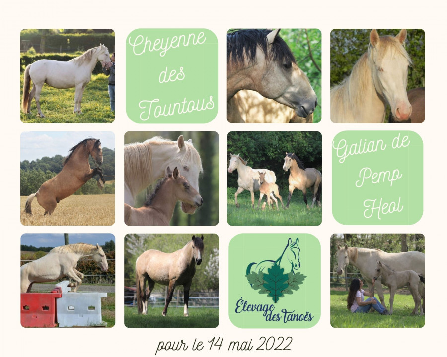 Et enfin, premier poulain de l'année chez moi, ce poulain sera issu du mariage de Cheyenne des Tountous et de Galian Pempheol ! Cheyenne est une jument qui me rejoindre dans deux semaines, je vais la chercher chez sa propriétaire actuelle qui a pensé ce mariage. Déjà deux poulains de ce croisement sont nés, et ils ont l'air tous les deux très chouettes ! J'ai hâte de faire plus ample connaissance avec cette douce jument pour pouvoir mieux en parler !