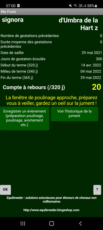 j'espère qu'elle ne poulinera pas avant les 320 jours mais j'espère aussi qu'elle jouera pas les prolongations