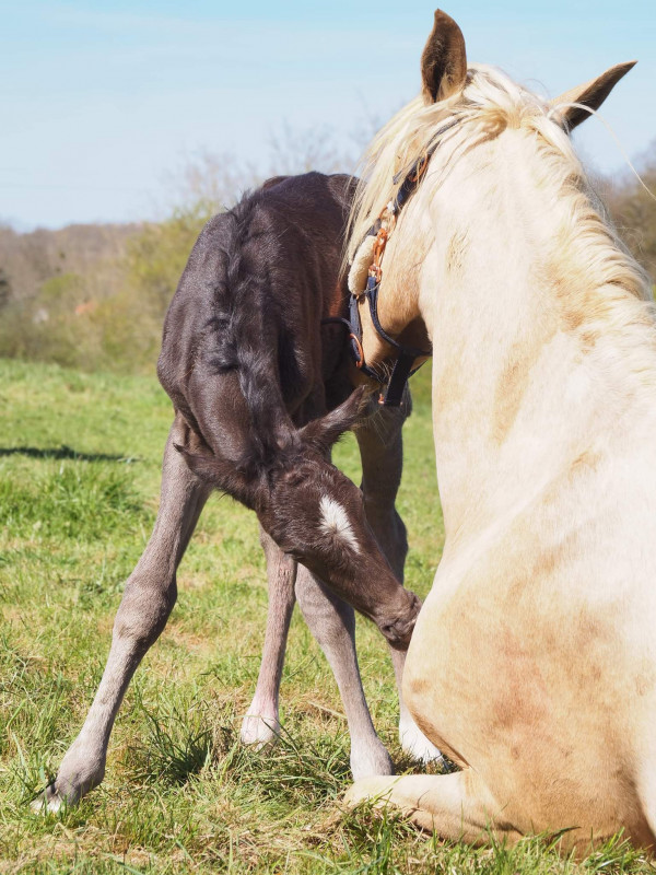 Coucou, Vento c'est donc décidé aujourd'hui pour nous montrer sa merveille, comme à son habitude en pleine journée à 10h après une nuit de contraction (mais madame ne veut pas faire au box er choisi sa place scrupuleusement 1 semaine avant terme au champ, bingo le même emplacement exactement que l'année dernière)