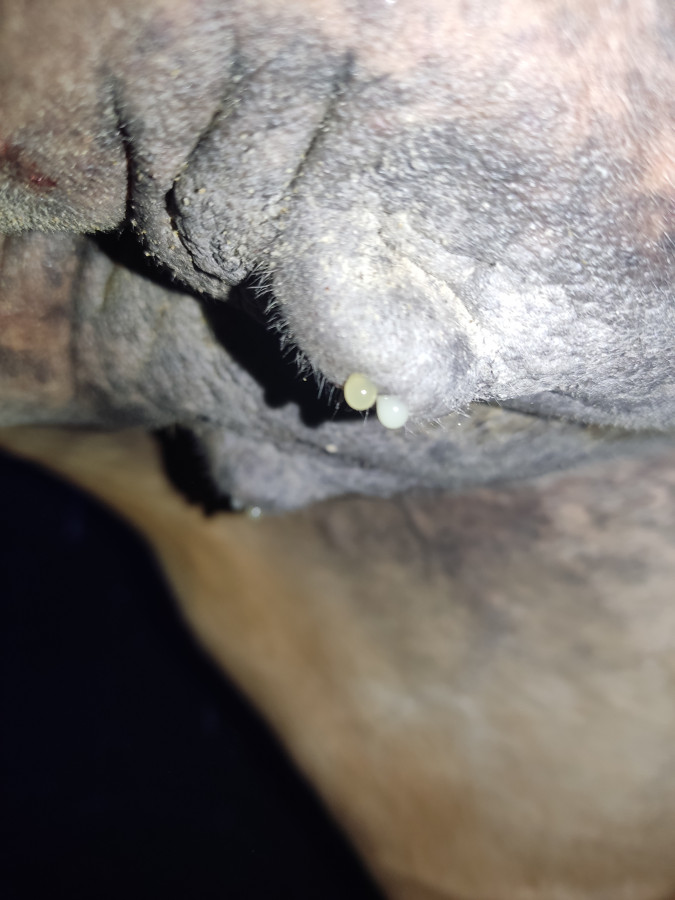 Pour la question d'une éventuelle adoption, Clairette ne le calcule pas, elle n'a pas réalisé que ce petit bout sortait d'elle, on n'a pas pu laisser se faire l'imprégnation vu l'état morbide où il est sorti, et elle était complètement amorphe après tous ces efforts. Je crois qu'ils continuent à stimuler la lactation artificiellement pour le cas où il se remettrait, mais si ce n'est pas le cas je ne vais pas l'embêter, d'autant que ses mamelles sont vraiment riquiqui