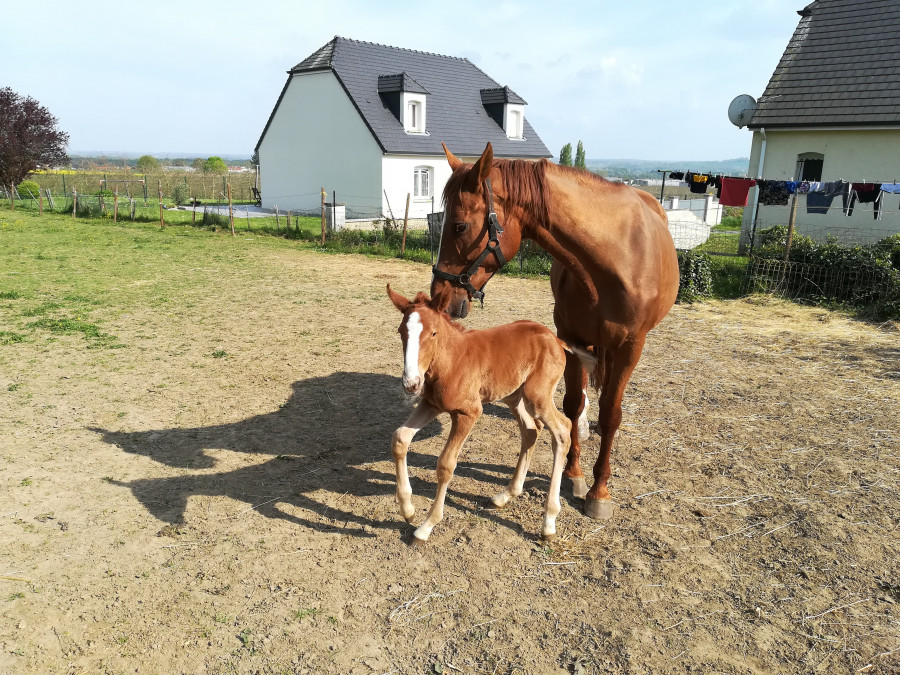 Une mise bas impeccable. Une belle pouliche alezan, super grande !!!