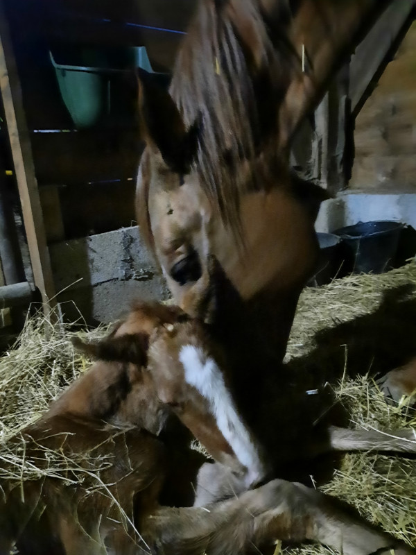 Après 11mois et 14jours ma jument s'est décidée à pouliner hier matin, vers 4h30.